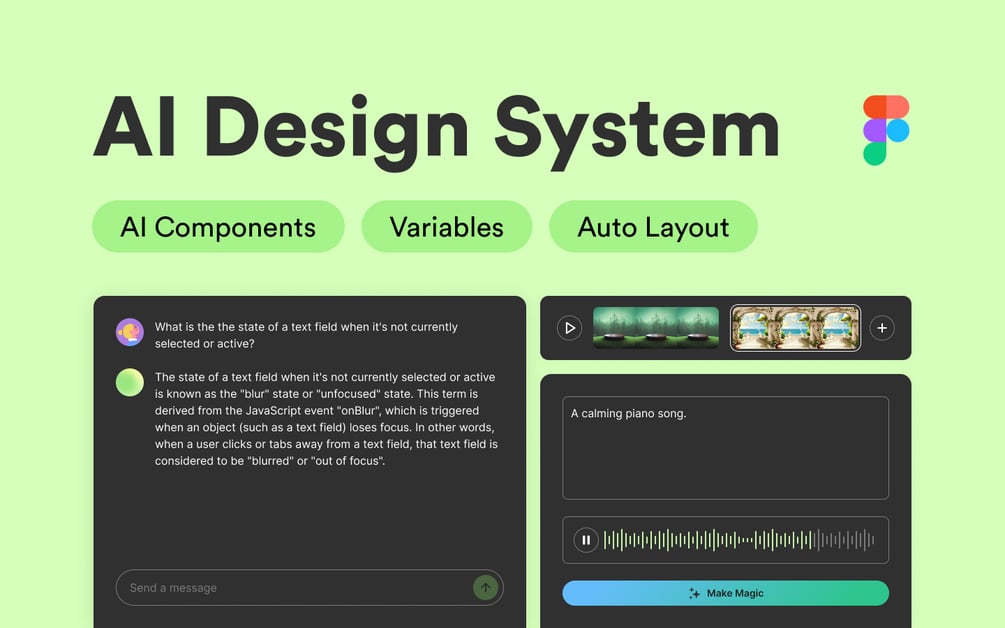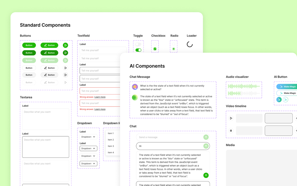 - Streamline your design/build process with this UI system, tailored specifically for AI content generation across text, image, audio, and video.