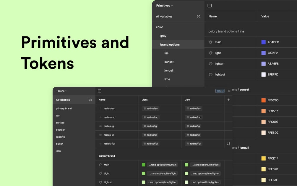 - Built with Primitives and Tokens variables.